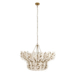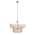 The lush allure of tropical foliage informs the two-tiered Bilal. Suspended from an antique brass iron finished chain, discs of coconut shells in a neutral ivory hue are strung together to reveal a vision of illumination. Finish will vary. Also comes in Eucalyptus Colour