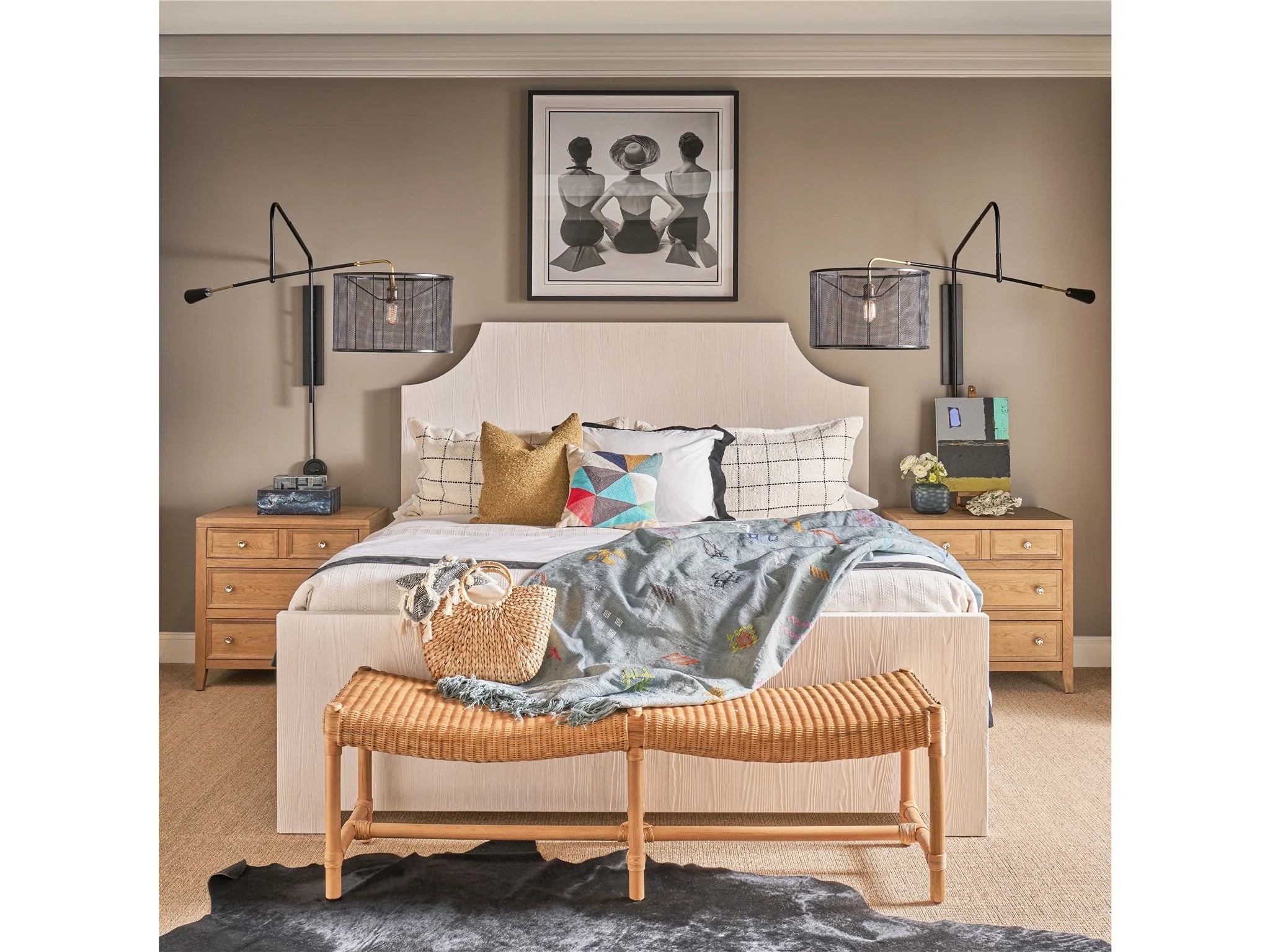 The Murro Bay Bench showcases two subtle dips in its narrow silhouette, creating a perfect seat for two. Its rattan body offers a gorgeous texture and will bring gentle depth into any space.