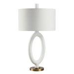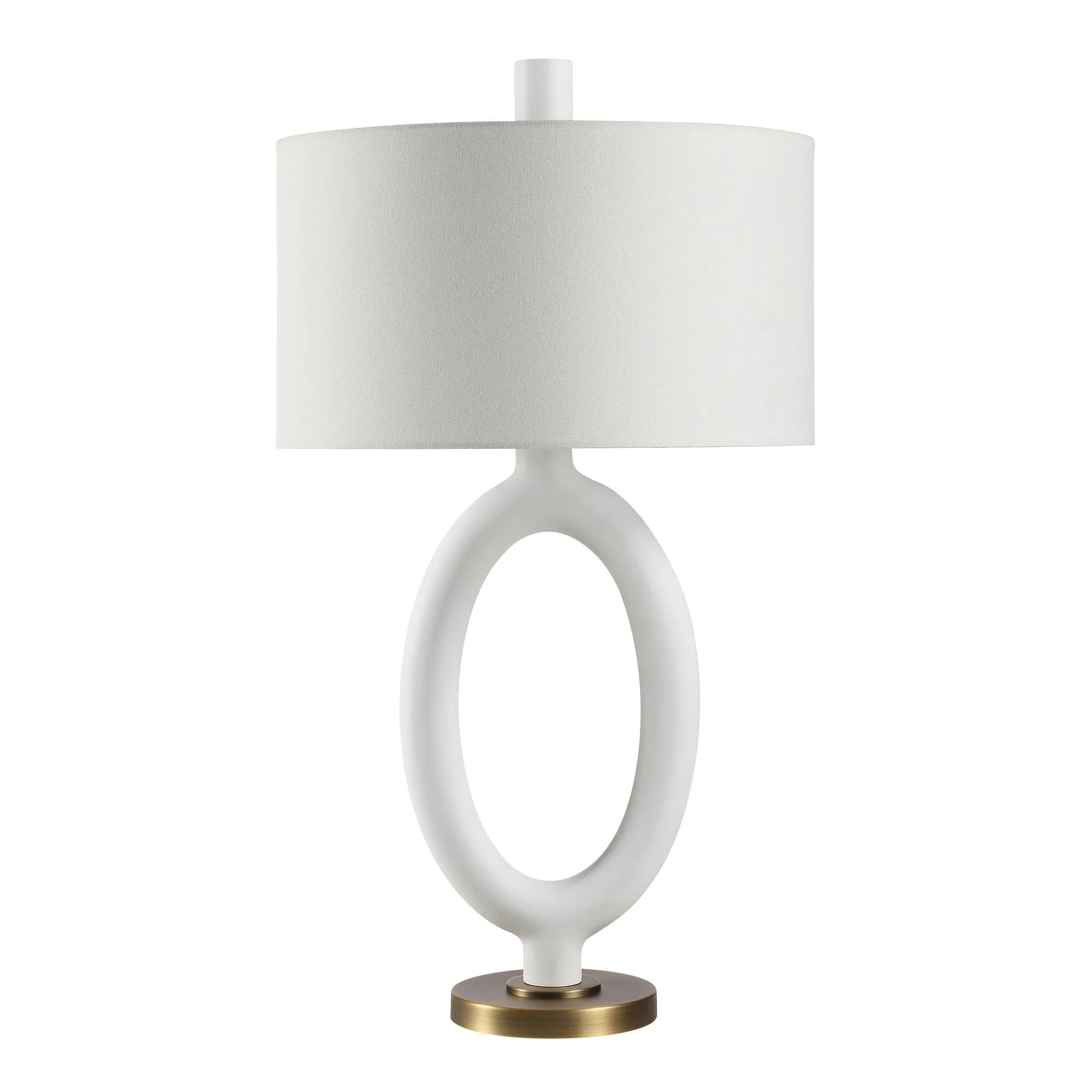 Designed with a simple silhouette and a modern aesthetic, the stylish Aeris Table Lamp will create a striking focal point in any interior. Combining a hand-painted white finish, dark antique brushed brass details and an off-white linen drum shade, this lamp is a perfect choice to light up any room with a welcoming glow.