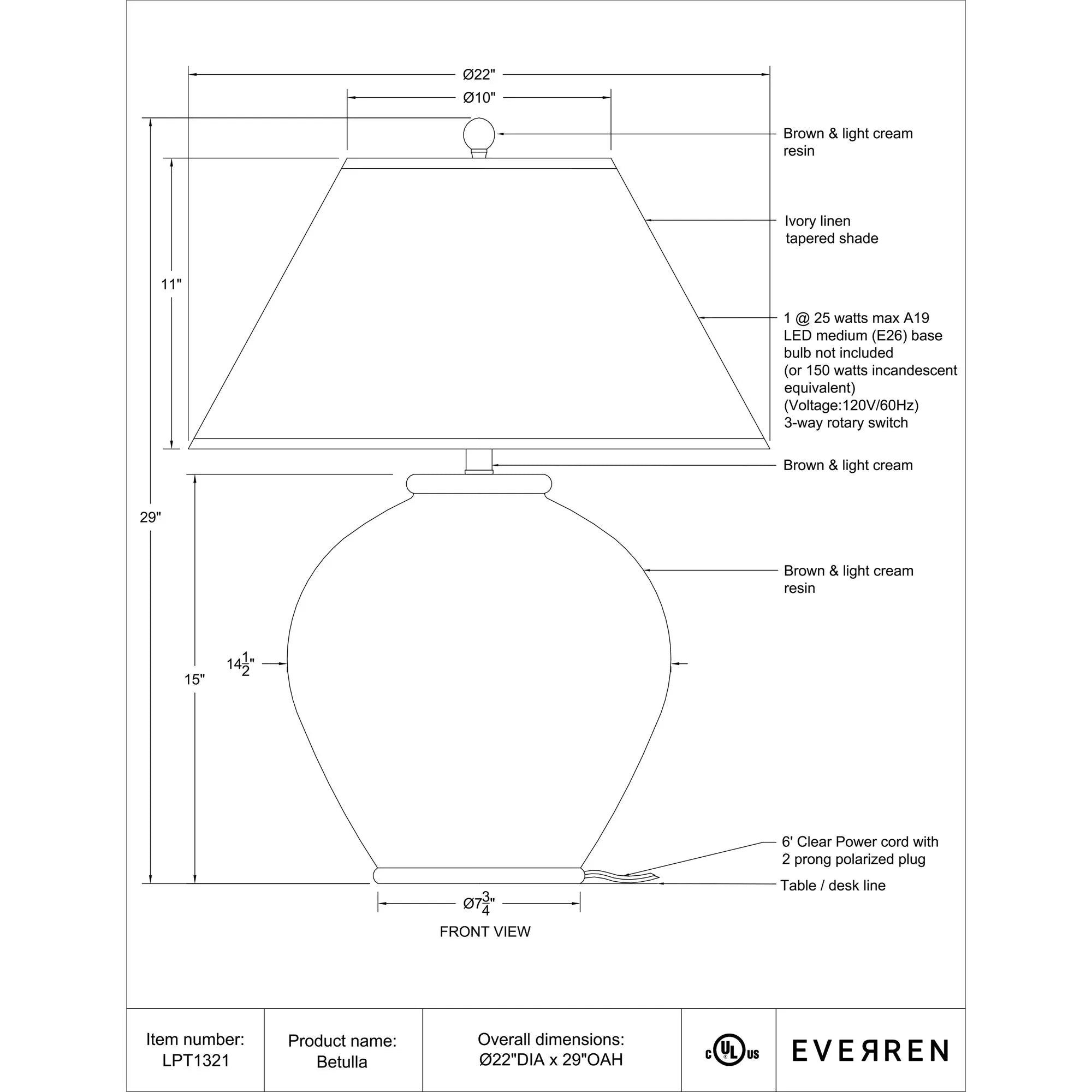 Inject a warm, earthy touch in any home with the stunning Betulla Table Lamp. Designed with style in mind, it features a richly textured body in shades of brown and cream, brass-plated fittings and a tapered ivory linen shade. Placed in a bedroom, living room, or dining room, this lamp offers adjustable lighting thanks to a 3-way switch, making it a great choice as a finishing touch in any room.