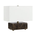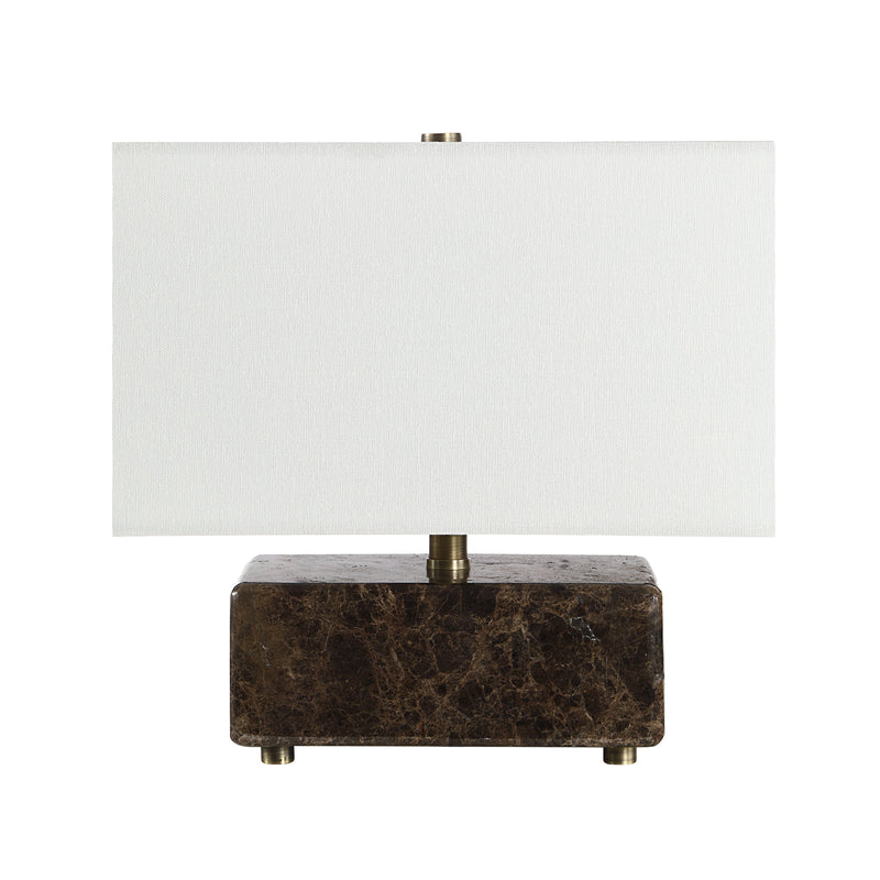 The Cabo table lamp makes a confident style statement with its bold, sculptural presence. Crafted from richly veined Emperador brown marble, its rectangular silhouette creates a striking focal point, complemented by a clean-lined beige linen shade. Glamorous yet grounded, this lamp adds depth, texture, and a touch of luxury to any room seeking a standout accent.