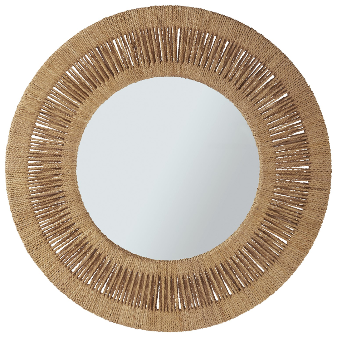 Subtly inspired by a sunburst silhouette, the Escape Coca Plum Mirror is a beautifully circular home accent wrapped in a naturally-finished woven abaca material.
