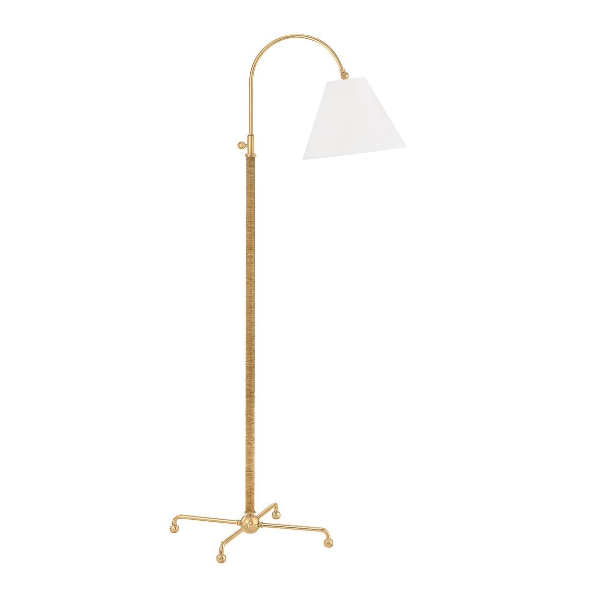 Crafted by Mark D. Sikes, the Curves No. 1 Floor Lamp features elegant classic details and a textured curved arm, all finished in a refined Aged Brass.