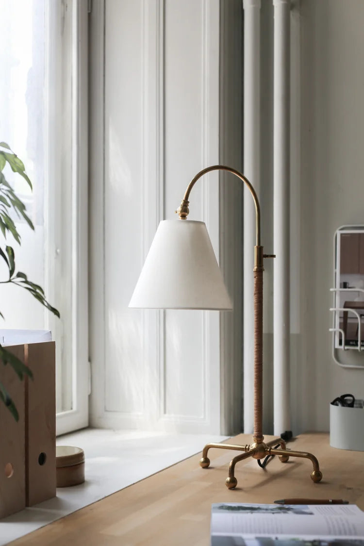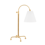Crafted by Mark D. Sikes, the Curves No. 1 Table Lamp features elegant classic details and a textured curved arm, all finished in a refined Aged Brass.