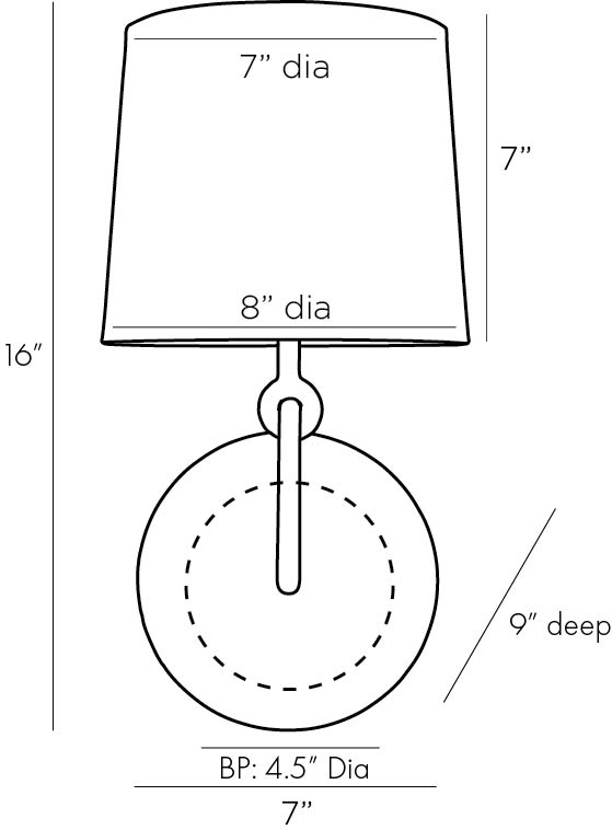 Profiling a glamourous silhouette that possesses sculptural and textural elements, the Giles creates interest and intrigue. A hand-hammered antique brass dish sets a modern foundation for this functional art piece, while a tall white linen shade keeps it classic. A solid bronze iron arm showcases a forged knot detail that ties these mixed materials and design elements together. The curvature of the backplate works to contour the light and create a warm glow. Pair with another for a double dose of glam. Finish will vary.