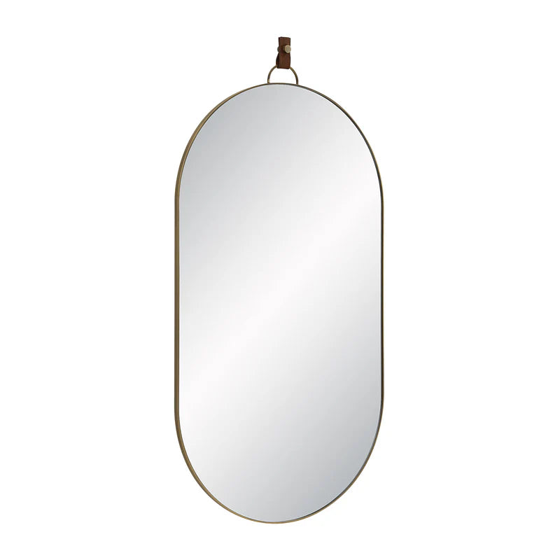 Crafted for contemporary settings, elevate any home or office with the refined style of the Hudson mirror. Its sophisticated silhouette, antique brushed brass-plated iron frame, and vegan leather hanger bring a touch of luxury, while the crystal-clear glass ensures a true reflection. Blending premium materials with timeless design, this wall mirror is an effortless way to enhance any room.