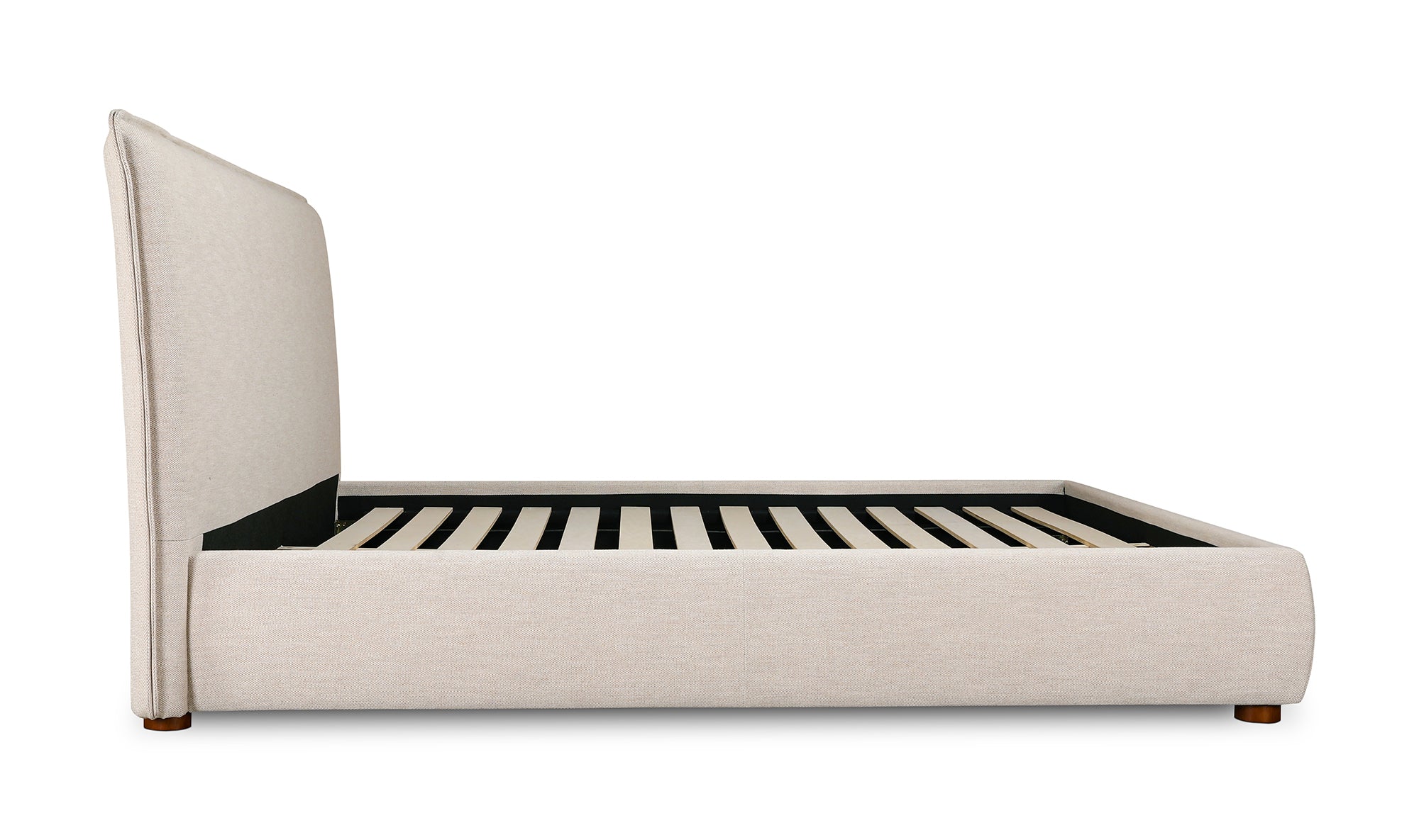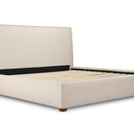 Upholstered from a soft, linen blend fabric, the Luzon bed is relaxed and welcoming. Its padded headboard and solid pine and engineered wood frame make it comfy and reliable, while its timeless design and neutral tone showcase a classic, practical look.