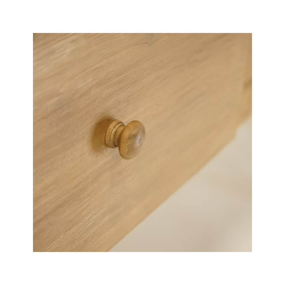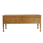 Timeless in design and rich in character, the Margot Reclaimed Wood Console brings a warm, storied charm to any space. Crafted from reclaimed pine, its natural wood grain and subtle imperfections tell a history all their own, making each piece unique. The three spacious drawers provide functional storage, perfect for tucking away essentials while maintaining a clean and effortless look. Thoughtfully designed with tapered legs and delicately rounded feet, this console blends classic craftsmanship with refined simplicity. Whether styled in an entryway, dining room, or living space, the Margot Console offers both beauty and utility in a way that feels effortlessly collected.