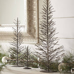Our Twig Metal Trees adds a touch of rustic charm to your decor. Crafted from metal with a black and brown finish, this twig-style tree stands 21.5" tall with a 7" diameter base, making it a perfect accent for any table or mantel. Its minimalist design evokes a natural, earthy feel, ideal for complementing seasonal or everyday decor. Display it as-is or adorn it with ornaments to create a personalized centerpiece.