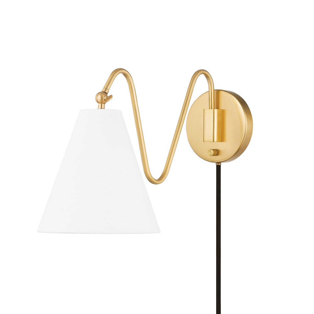 Aged Brass with White Belgium Linen Shade, Bulb not included