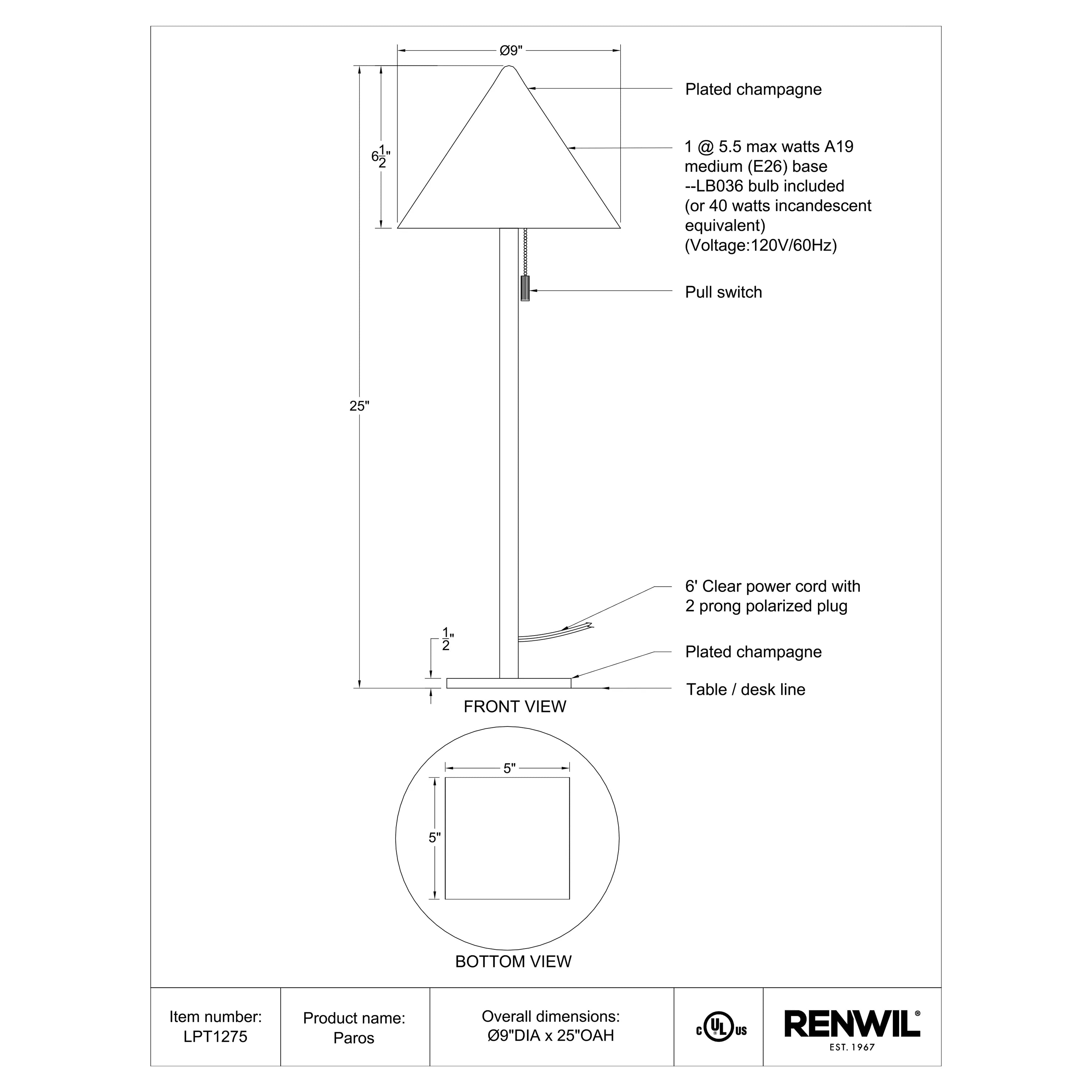 A stately cone-shaped shade sits in perfect balance atop a long and lean base, both in a striking champagne plated finish. Put it to work as a pair of bedroom table lamps or try it next to a sofa as a living room lamp. Anywhere it sits, illumination and beauty are guaranteed.