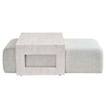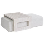 The River Rock Nesting Cocktail Ottoman offers versatile functionality with its two-piece design. Finished in a light and airy River Rock, the upholstered ottoman provides comfortable seating, while the nesting tray table adds a convenient surface for drinks or display. This set brings a blend of style and practicality to your living space, perfect for flexible arrangements and effortless entertaining.  Finish: River Rock