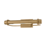 The Caspian family draws inspiration from soft hardware forms, translating sweeping metal lines into a tailored picture light. A continuous arm encases the tubular shade, balancing function with form. Finished in Patina Brass and available in two sizes, it casts a focused beam across artwork or architectural details.