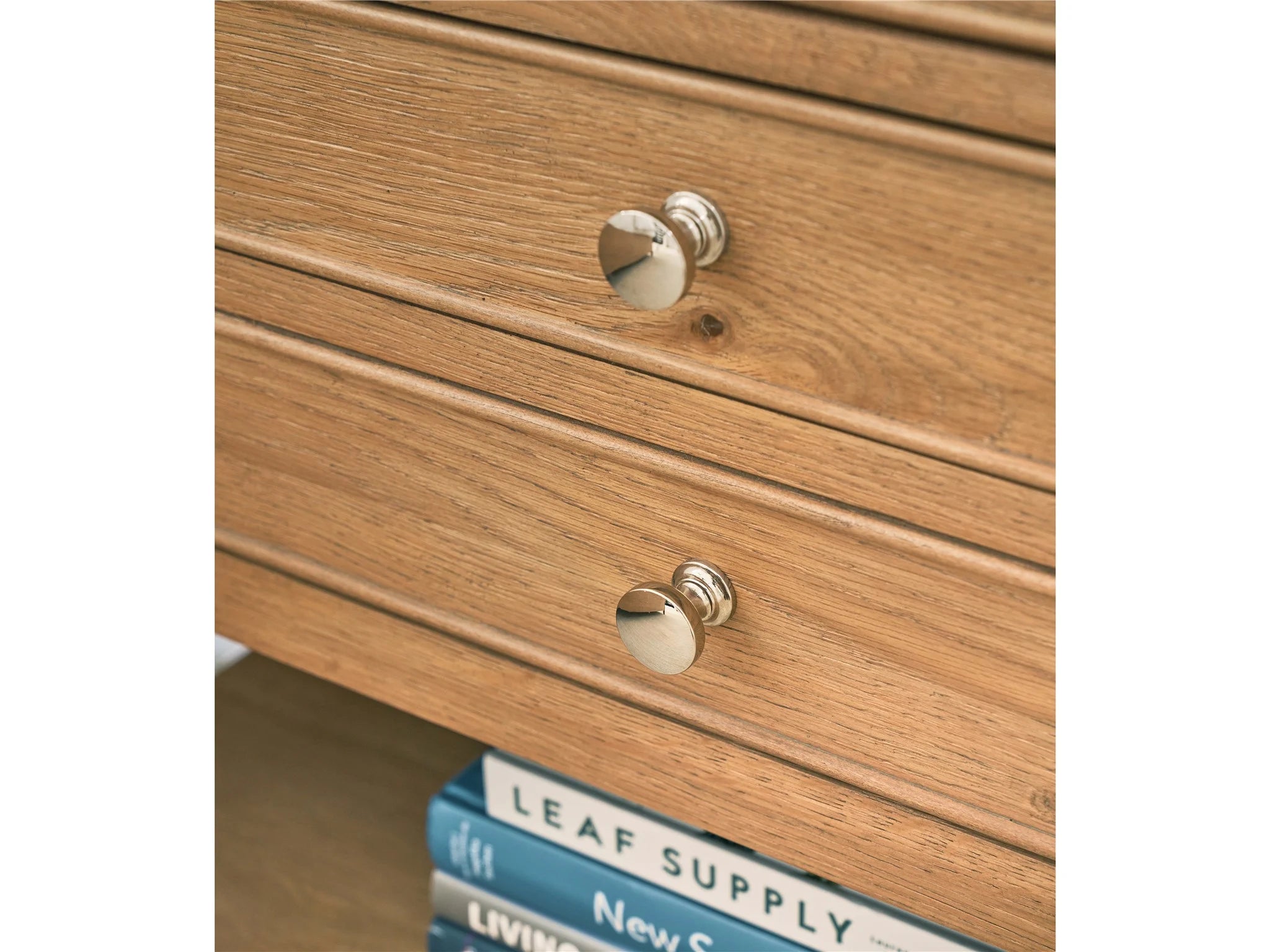 Featuring a combination of enclosed drawers and a lower open-air shelf, the Saugatuck Nightstand enhances bedsides with a lighthearted appeal.