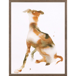 The 'Stay' image is contemporary, watercolour-inspired with shades of gray and sienna, this piece is perfect for the modern canine lover.  Giclee art print.  Glass Framed