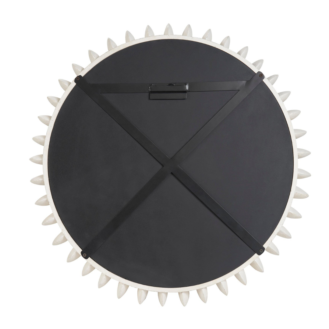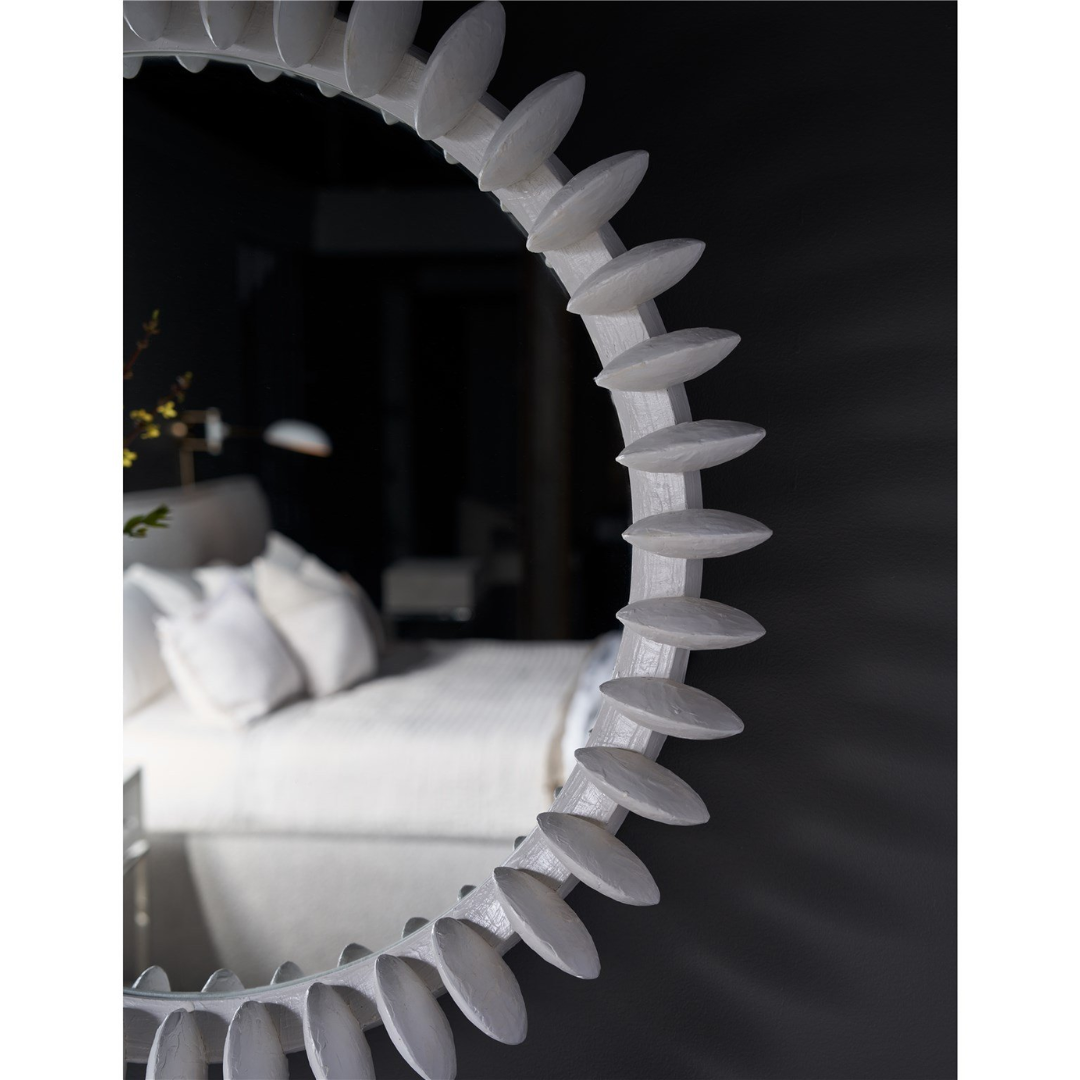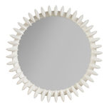 The Solstice Mirror stands as a beacon of contemporary design, its frame is a radiant composition of Cast Aluminum and Steel in a pristine White finish. The starburst silhouette is reimagined with sleek, modern pegs extending outward, creating a lively and refined accent that brings a burst of energy and sophistication to any room.