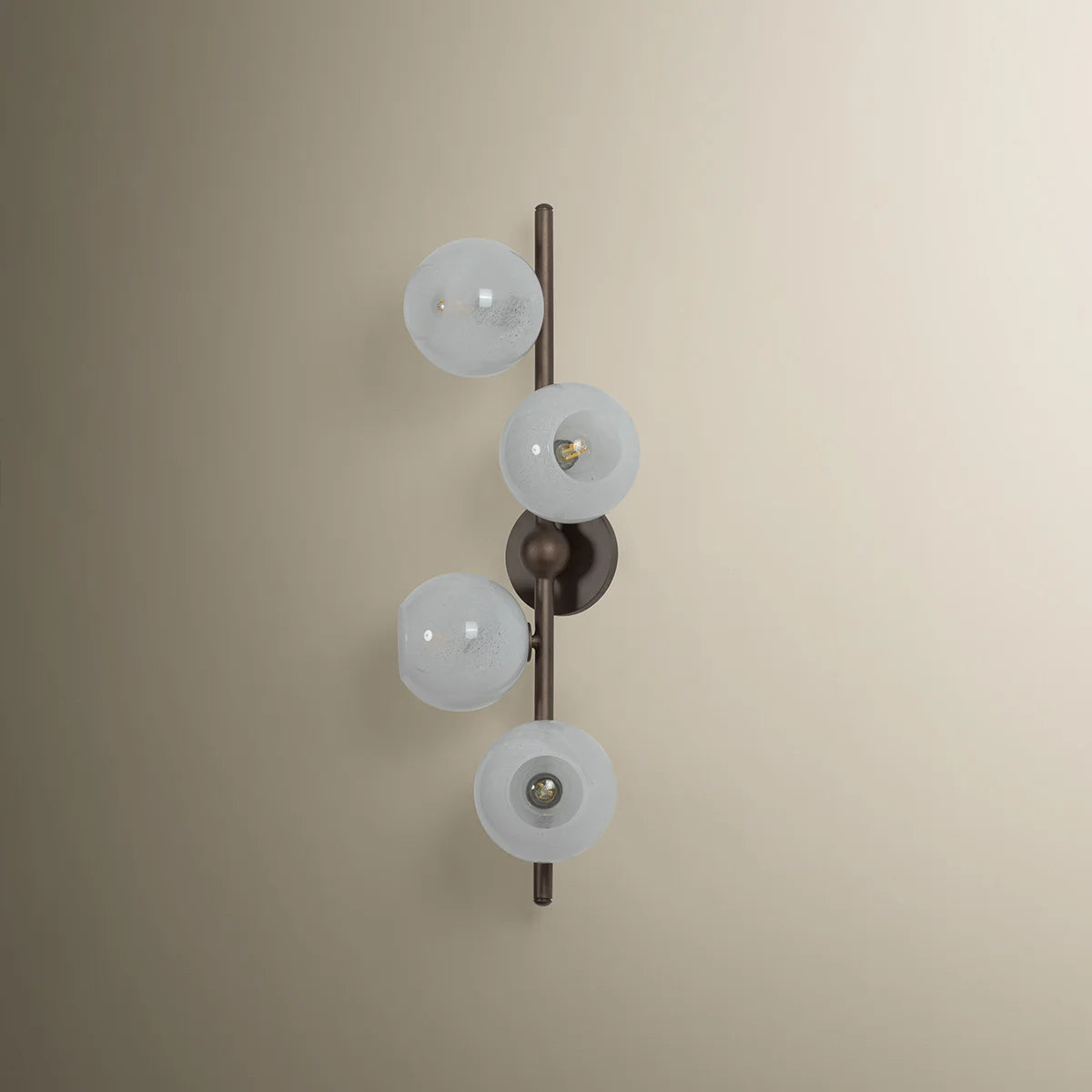 Sonny takes inspiration from a mid-century sputnik chandelier, reimagined with an organic, staggered rhythm. Finished in Bronze Leaf, slender arms extend outward, culminating in a softly glowing cloud seedy glass globe. The seemingly randomized arrangement creates a dynamic, almost celestial composition. Sonny serves as a stunning centerpiece for dining or living spaces.