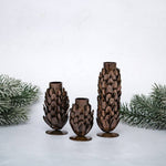Strobilus is our pinecone shaped Candle holder. Suited for tapered candles this pretty design is organic in nature. Made from Metal, Hand-crafted and featuring a dark rustic stain. Hand-crafted in India. Available in 3 sizes.