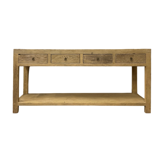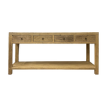 Handcrafted from reclaimed wood, each one of our consoles brings its own sense of charm & history through its textured wood. Four Dovetailed drawers provide simple storage solutions, while the lower wooden shelf allows ample open storage below.