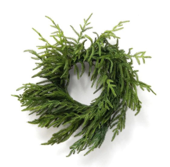 This stunning 16" Norfolk Pine Fresh Touch Wreath will add a timeless expression of seasonal elegance. Crafted with delicate faux Norfolk Pine branches that create an airy, natural aesthetic, this wreath brings warmth and texture to any entryway or smaller interior space.