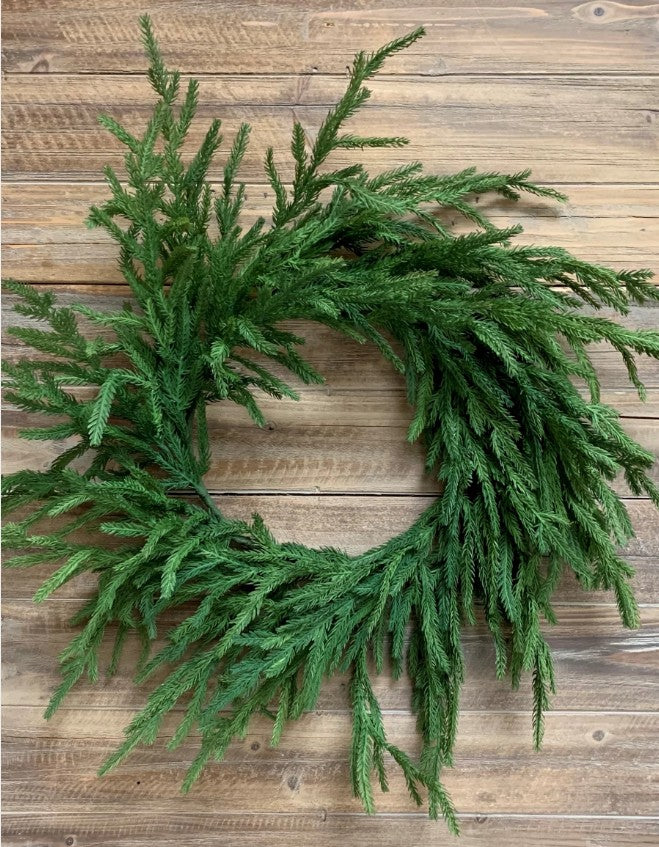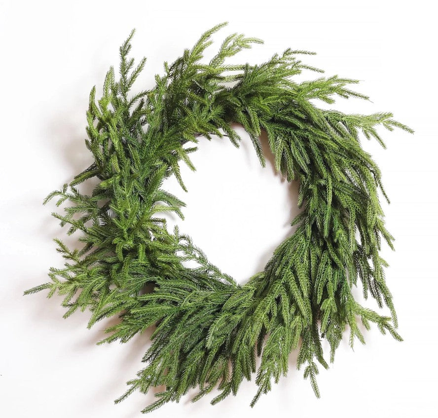 This stunning 22" Norfolk Pine Fresh Touch Wreath will add a timeless expression of seasonal elegance. Crafted with delicate faux cedar branches that create an airy, natural aesthetic, this wreath brings warmth and texture to any entryway or interior space.