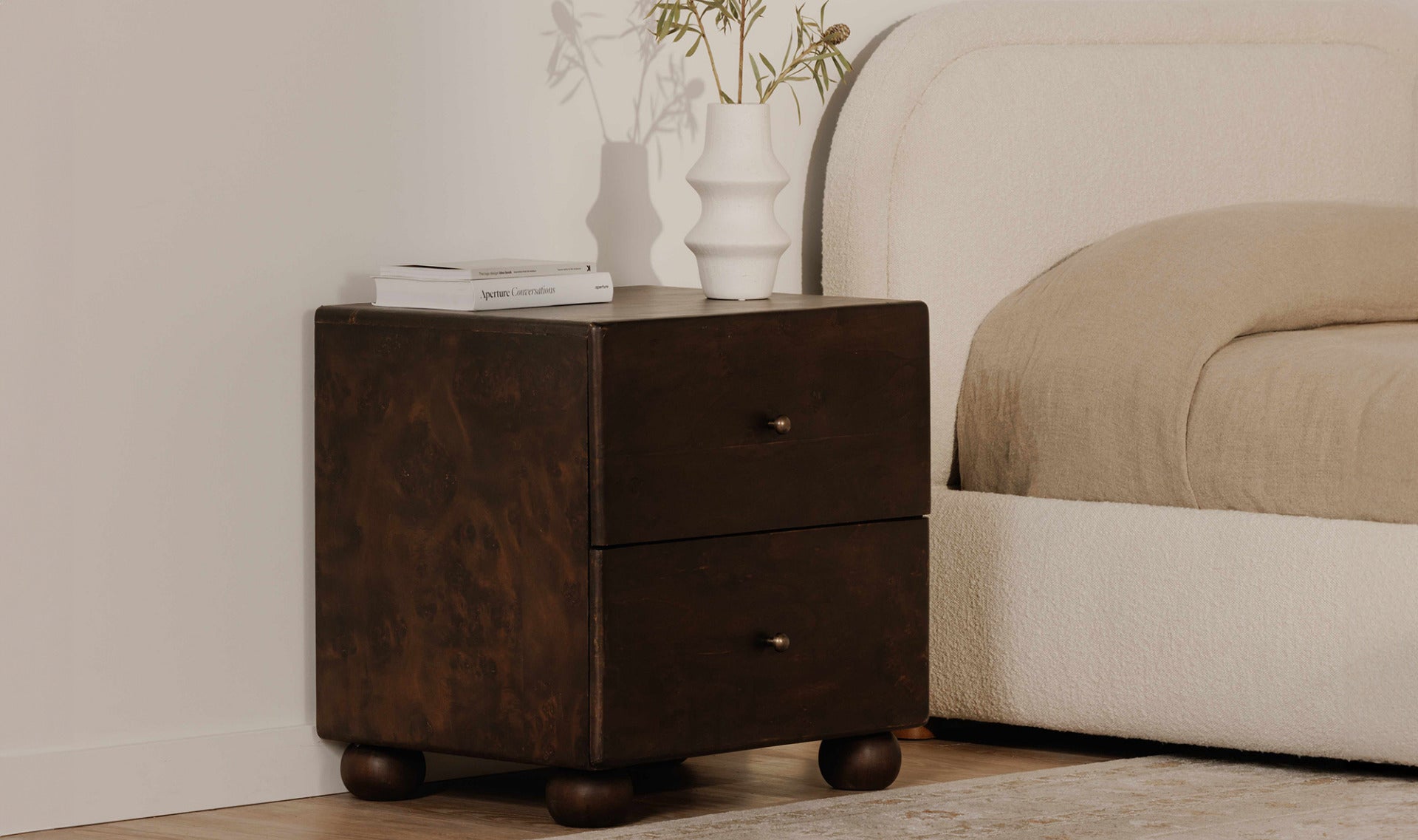 As if it tells a story woven through generations, the York nightstand was born from a profound respect for heritage. With burl veneer and brass detailing, this collection celebrates the beauty and significance of heirlooms passed down through families--designed to be as timeless as the memories they will hold, with the hope that someday, future generations may cherish them.